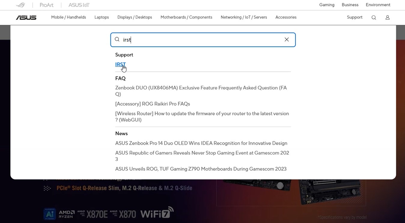 하나는 ASUS 홈페이지에서 'IRST (Intel Rapid Storage Technology)' 드라이버를 내려받아 설치하는 것이고