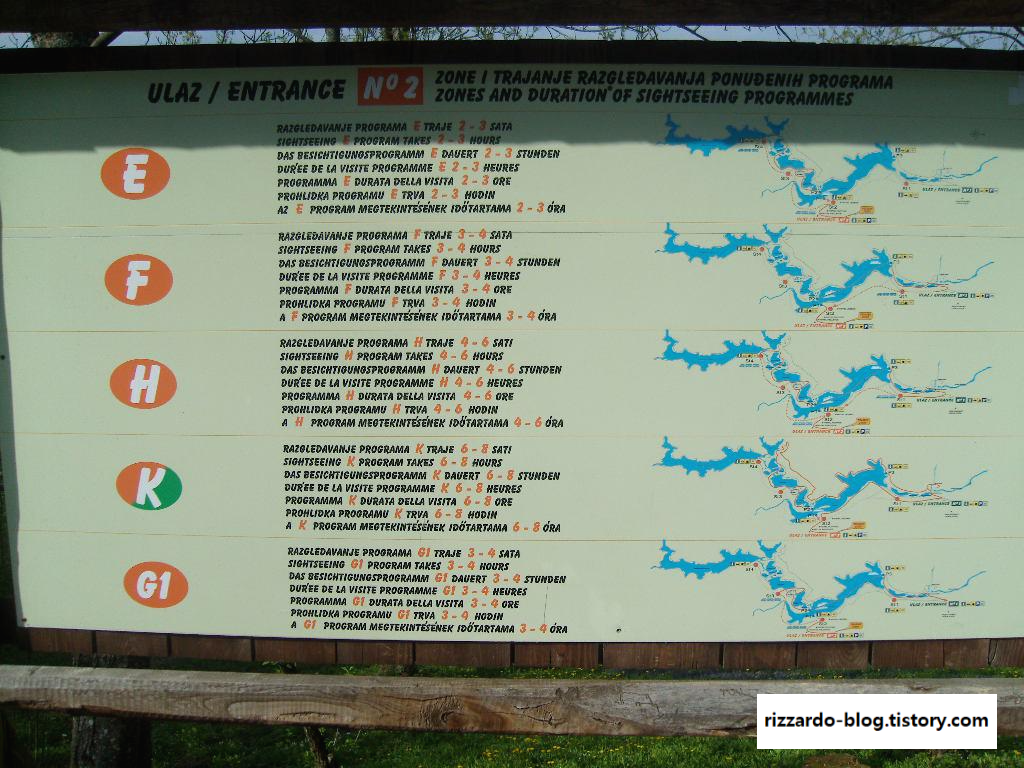 먼저 크로아티아 플리트비체 국립공원에 도착하면 입구에 각 코스를 설명하는 입간판이 있다.
