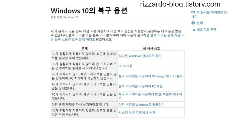 Windows 10 복구를 위한 다양한 방법을 참고할 수 있다.