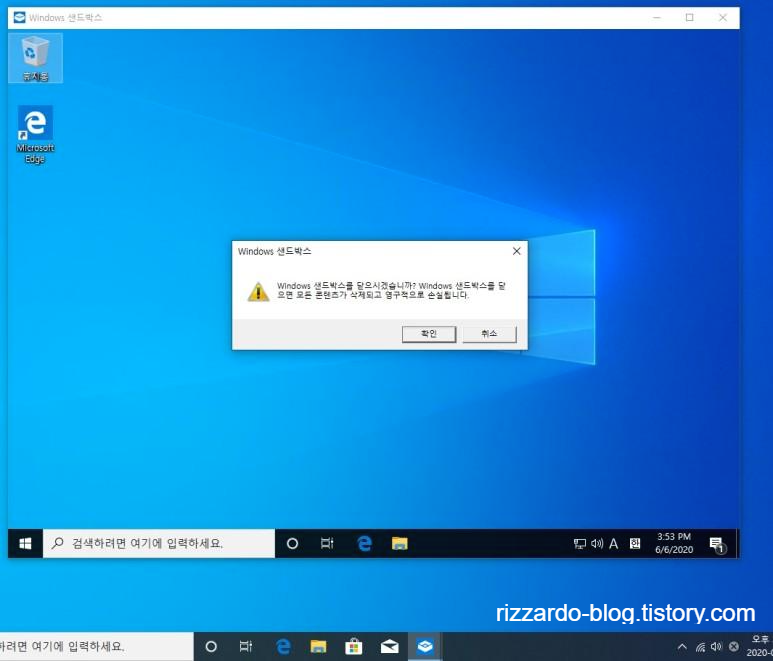 Windows Sandbox를 종료하게 되면 다음과 같은 추가창이 팝업된다.