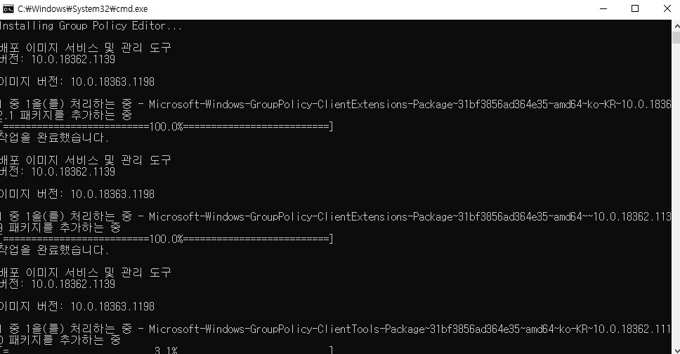 patch가 완료되면 "로컬 그룹 정책 편집기 (실행창에서 'gpedit.msc' 입력)"를 열어