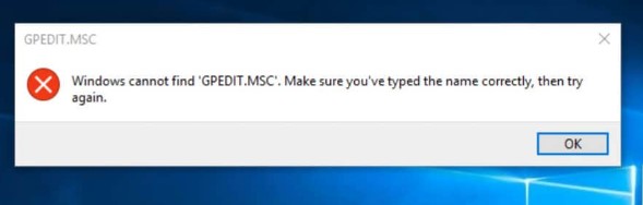 The following warning message appears. [Cannot find 'gpedit.msc'.]