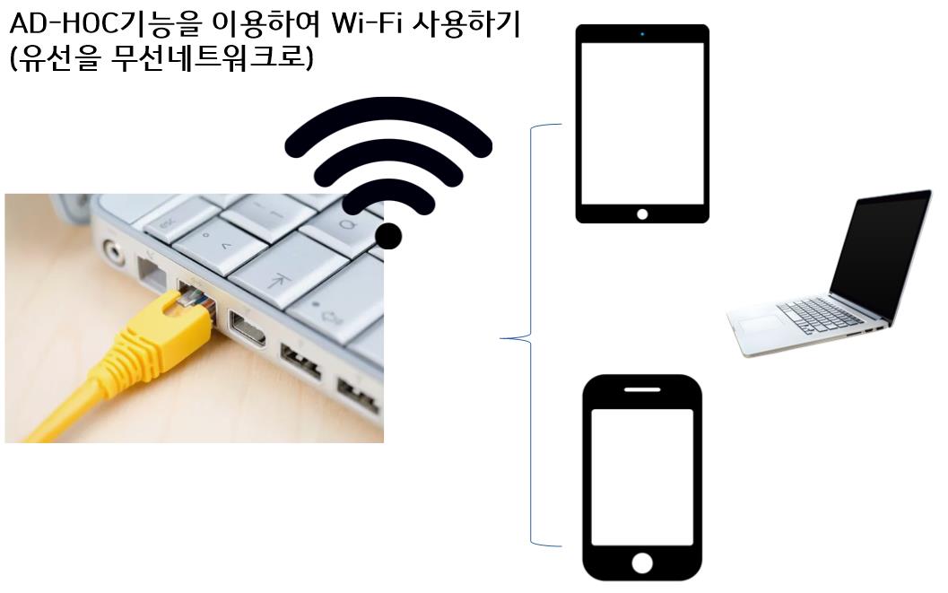 유선으로 연결된 노트북을 AD-HOC 기능을 이용하여 Wi-Fi 사용하기