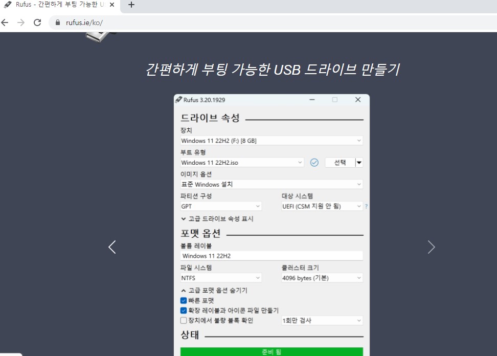 이번 내용은 마이크로소프트사의 최신 운영체제 (OS)인 Windows 11을 USB에 설치해서 특정 기기의 USB 포트에 꽂아